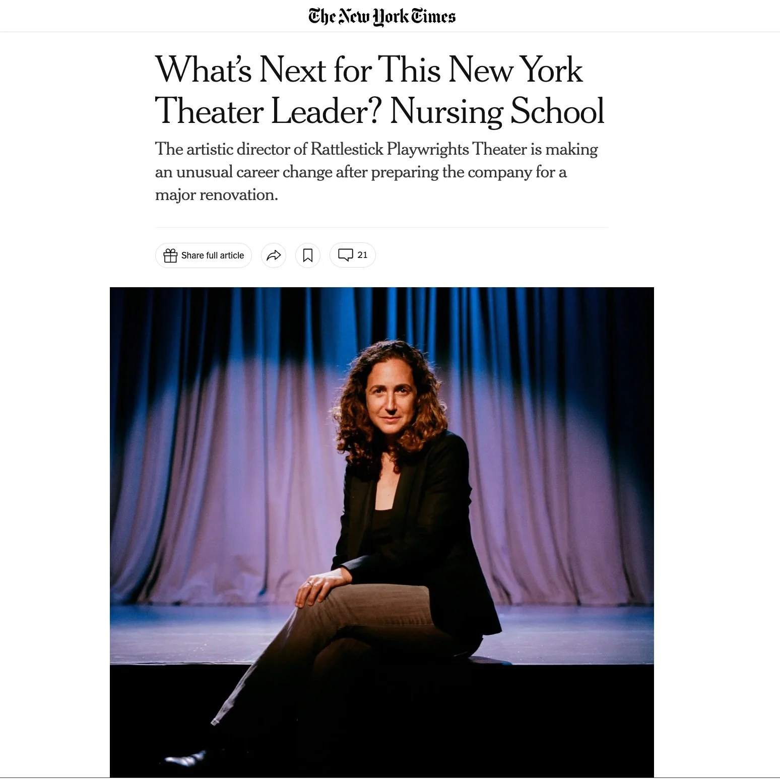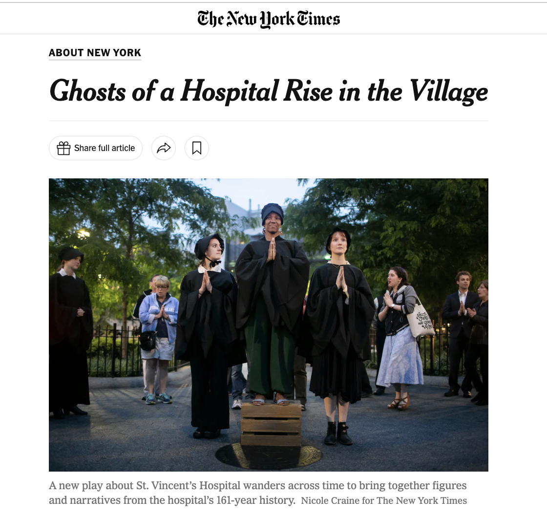 NY Times: What’s Next for This New York Theater Leader? Nursing School Regis College: Nursing is Her Second Act NY Times: Ghosts of a Hospital Rise in the Village All Of It: Novenas for a Lost Hospital Playbill: 2 Years In, Daniella Topol Has Reinvigorated Rattlestick Playwrights With New Vision